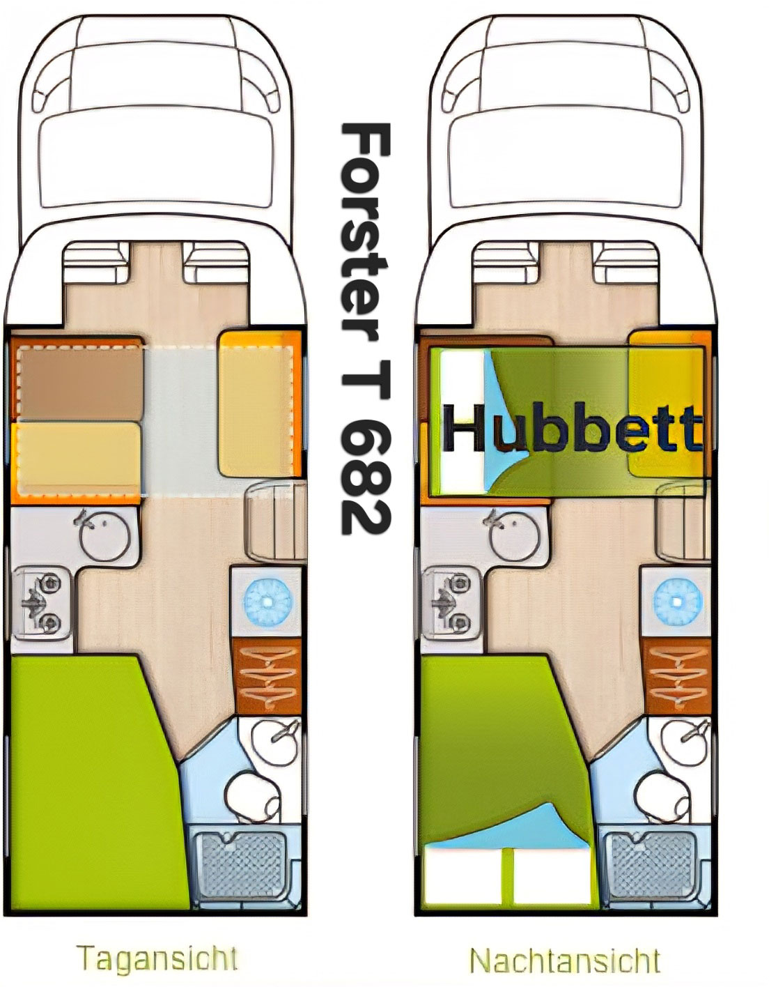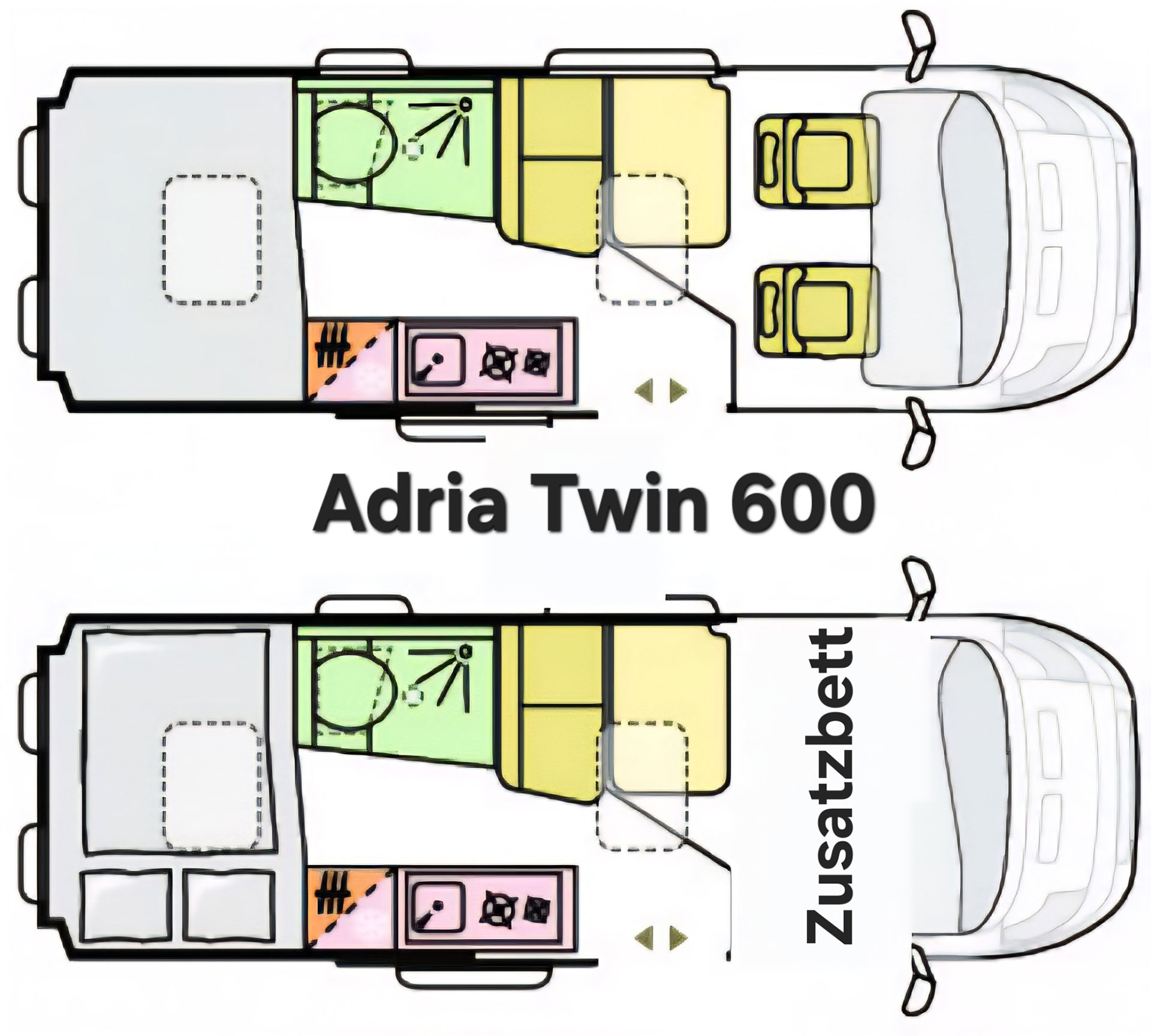Schlafplätze: Querbett 195×150 cm + Zusatzbett 65 x 170 cm